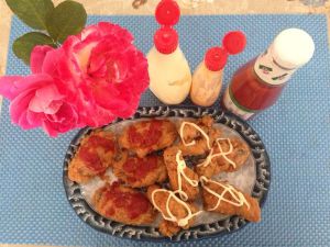 鸡翅上可以根据自己的口味,适当的加一些沙拉酱、千岛酱、番茄酱!