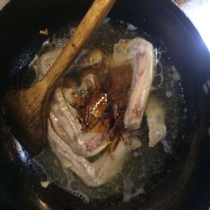 加入白糖 老抽和生抽 盖上锅盖大火烧开后转中小火慢慢煮半小时 其中要记得翻面