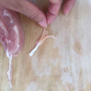 鸡小胸比较嫩,所以选择这个,有白筋的地方顺着纹路片下