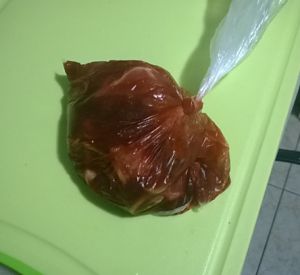 用密封的容器装好拌好的肉,熊猫这里用的是食品级塑料袋,放冰箱里腌起码8小时