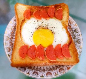 空气炸锅调制200度,10分钟。当叮一声响起,排上香肠片,撒一点椒盐,再烤制5分钟。