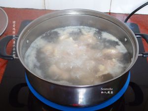加入6碗清水,煮沸,转为小火煲45分钟;