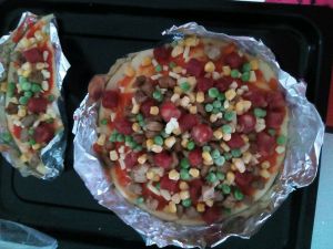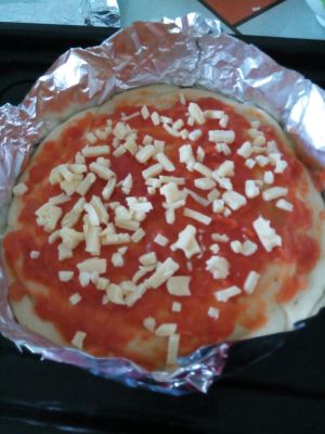 入烤箱上火200下火160。烤20分钟后取出撒上芝士,再烤5分钟。