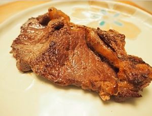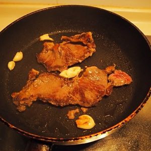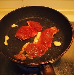 重要:开大火热锅,倒入植物油,等到冒微烟时,牛排入锅保持大火,等一面微焦,大约1分钟(牛排汁水往外冒时),翻另一面煎1分钟。此时出锅6成熟,想再熟点可以适当延长10多秒,煎的过程牛排只翻一次。(此方法适用1cm厚牛排,厚度不同时间做相应调整)