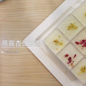 杏仁豆腐粉:水=1:4,充分搅拌后放模具…入冰箱冷冻…口感更好…冷冻40分钟…加燕窝…撒上桂花…或者玫瑰…宴客高逼格的甜点…