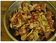 香菇用40度的温水,加点白糖发泡约1小时,沥干水分,切小块。