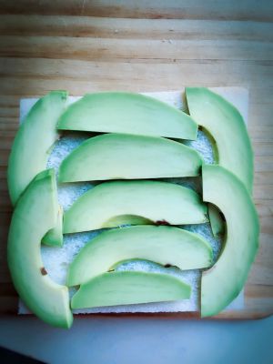 第二层白吐司上铺上牛油果