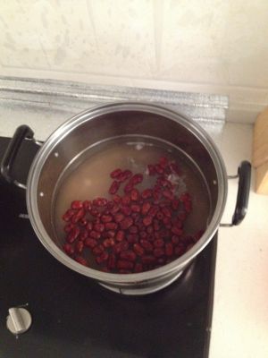 大米淘洗干净,待水开时倒入锅内,继续小火熬煮