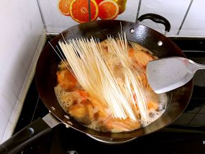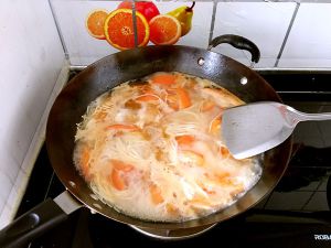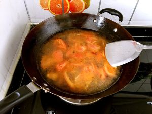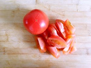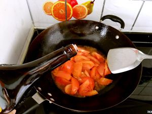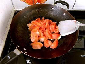 放入西红柿翻炒,直至西红柿熟透出汁。