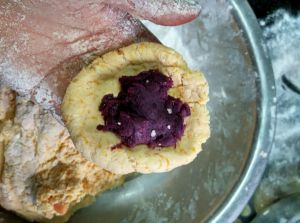 取适量包上紫薯馅包匀