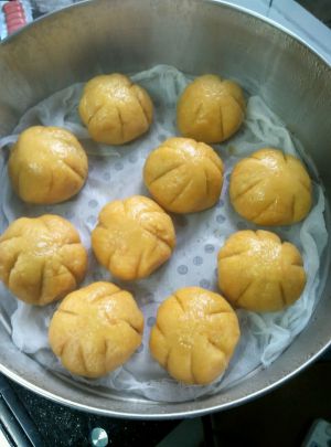南瓜隔水蒸熟放入适量的白糖,糯米粉揉匀
