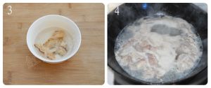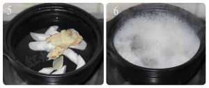 5. 锅中加入1000ml水,放入山药﹑当归﹑生姜。