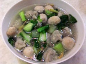锅里水烧开后,倒入鱼丸、肉丸,煮至丸子有些膨胀,倒入上海青再煮1-2分钟。