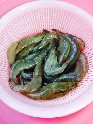 对虾洗干净,剪掉虾须,虾爪啊 修理干净…