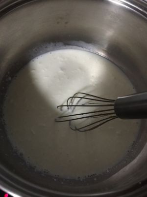 将淡奶油,牛奶,炼乳,砂糖全部倒入小锅中。电磁炉最低火,边加热边搅动,直至砂糖融化,锅中材料全部溶解!晾凉,备用。(电磁炉低火让锅中材料一直在不开锅仅是加热的状态下搅动)