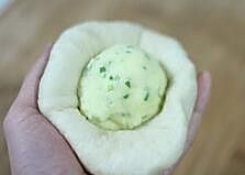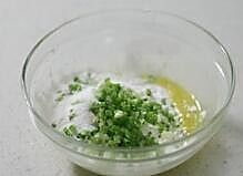 黄油切小块隔热水加热成液态,然后把玉米淀粉,盐,葱末与黄油一起混合,揉成面团;