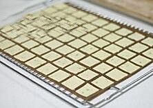 将切好的饼干皮放在烤盘上。每块饼干之间留一些空隙。在饼干上喷一些水,放在温暖的地方发酵25分钟左右,直到饼干厚度变成原来的1.5倍-2倍。放入预热好180℃上下火的烤箱中层,烤13分钟左右,至表面金黄色即可出炉。