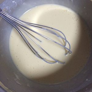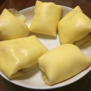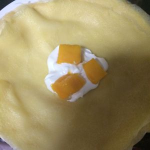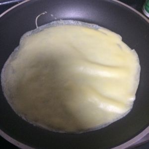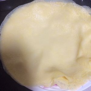 把平底锅热好后快速导入面糊 迅速散开 切记不要烤糊了 这样才能做的很好的班戟皮