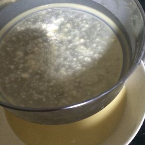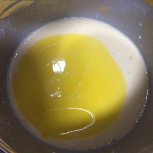 把搅拌好的低筋面粉糊和鸡蛋糊搅拌均匀