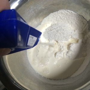 将40g细砂糖倒入200ml淡奶油 打发成奶油