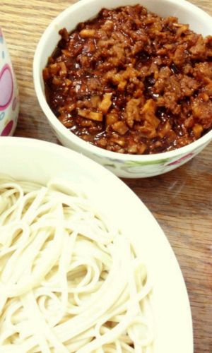 热锅凉油煸炒肉丁加入葱姜蒜倒入拌好的酱不停的翻炒防止巴锅(需要用小火炒至半个小时),炒好即可用这个酱做炸酱面!