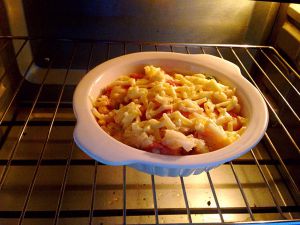 不过今天是要做焗土豆泥的啊,还是丢进多多的马苏里拉芝士,放进烤箱等会儿吧~芝士就是力量!