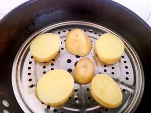 一个大土豆或者两个小土豆洗干净,连皮上锅蒸熟,微波炉加水打熟也可以。