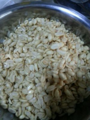 将花生浸泡一夜后去衣放入冰箱冷藏备用
