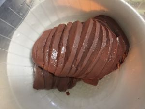 鸭血或鸡血买回来用清水泡着,做菜前按自己喜欢的方式切片或切块,沥干水分