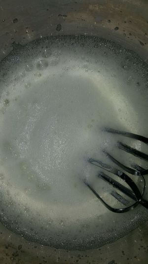蛋白放大盆里,滴几滴柠檬汁或者白醋,或者什么都不放,打发开始,逐渐加剩余的糖。