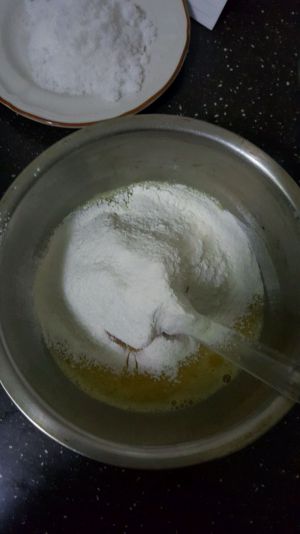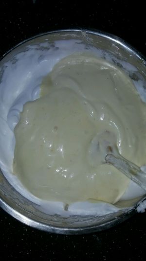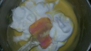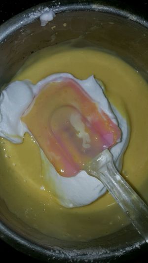 面,盐少许,一丢丢就好,过筛到蛋黄糊里面,翻拌匀。待用