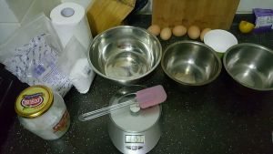 把料称好,蛋白蛋黄分离,蛋黄里面加入玉米油,和20g糖,水混合均匀,放一边备用。