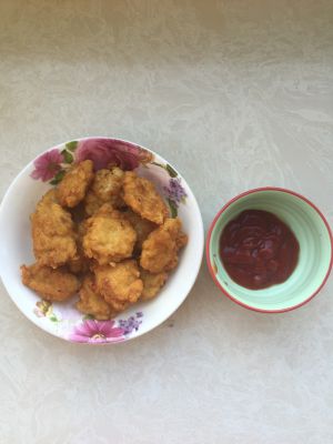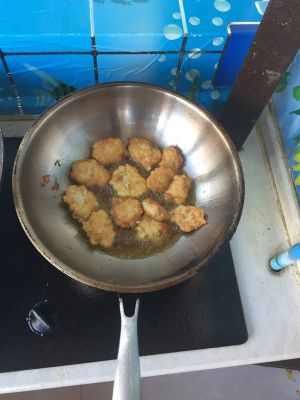 把拌好的鸡容做成大小均匀的饼,入锅炸至两面金黄捞出控油即可……
