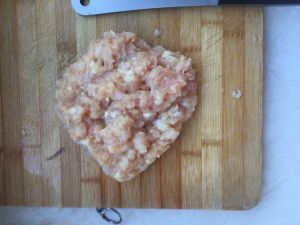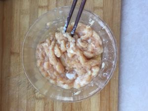 把鸡胸脯洗净沥干水分,然后剁成容