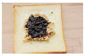 取另外一片吐司叠放在铺好馅料的吐司上