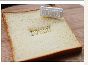 取出一片吐司,用印章在中间印出图案