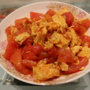 西红柿加少量盐,之后倒入鸡蛋,翻炒均匀即可关火。