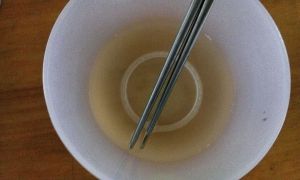 3、将盐、糖、醋、甜醋倒入凉白开,凉拌溶解。