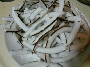 姜,乌鸡和椰肉加水煲40分钟后加椰子水进去煲多10分钟,下盐调味,鲜美清润滴汤来了