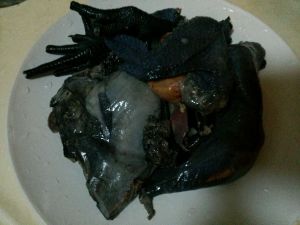 乌鸡半支剁大块,我家两个人喝,如果家人多可以用一支来煲,凉水入锅焯去血沫