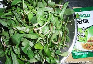 把马兰头洗净,边上一包金菇幼笋,待会放一起炒。