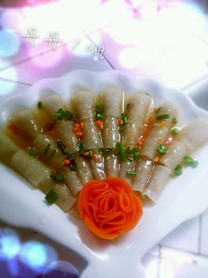 将芡汁淋在蒸好的萝卜卷上。ok!完成!