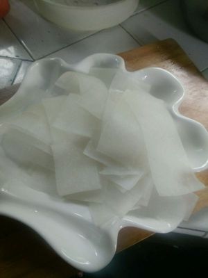 白萝卜去皮洗干净,用刨子刨成片状,加上五克盐腌制一会儿。