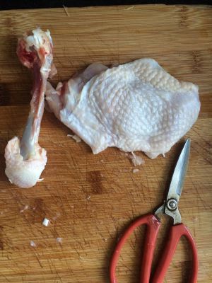 鸡腿拆骨,怕麻烦的话用鸡胸肉也行,不过鸡腿肉更嫩滑