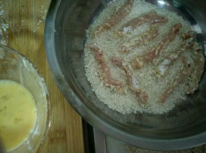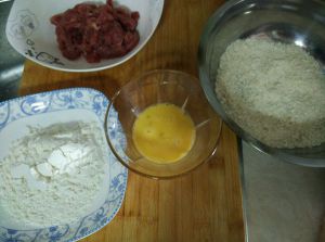 准备好,面粉,鸡蛋液,面包屑。