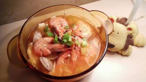加入适量的清水···待锅中水烧开后····加入大虾,花蛤···