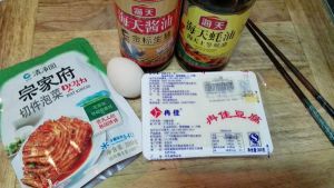 辣白菜··切碎,软豆腐切小块··或是用勺子挖成小块都可以··备用···
