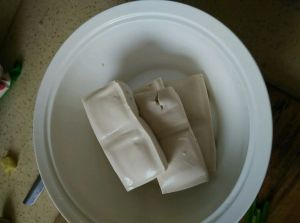 豆腐用的就是这种不知道叫什么豆腐,我一般都用盐水泡一会,这样豆腐会硬点,更好煎。