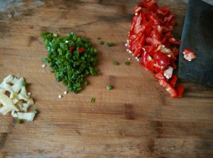 生姜 小葱 红辣椒切好备用。