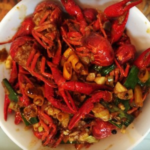 过中油烧热把腌好的龙虾入锅翻炒片刻乘出备用